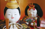 江戸時代中期に、京都上賀茂神社で祭事に使う柳筥(やなぎばこ)の材料である柳の木の残片で、神官が木彫の小さな人形に溝を付け、衣装の残りの布を挟んで着せ付けたのが始まりです。江戸木目込人形は作者により個性が出ます。今回の展示品は、独自の毛書技法で、長い線を1本書き横に短い線を3本書き、その連続で髪の毛の生え際を表現します。髪の毛よりもやや薄い墨を使うことで優しさを出し、長い線を入れることによって力強さも表現しています。